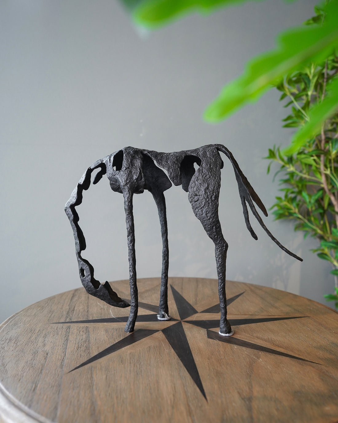 This striking black iron sculpture showcases bold artistry with its strong lines and refined craftsmanship,...