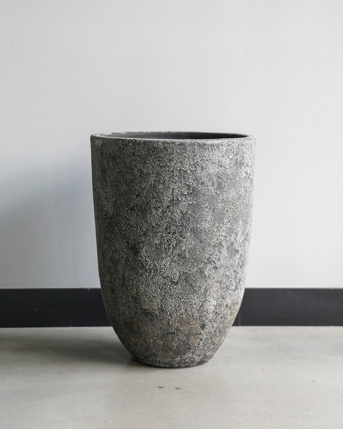 Standing a full metre high, this pot rises like a silent column of earth. Shaped...