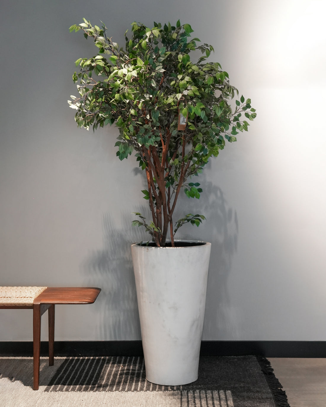 A white ceramic pot with a smooth finish, ideal for displaying artificial plants, offering a...