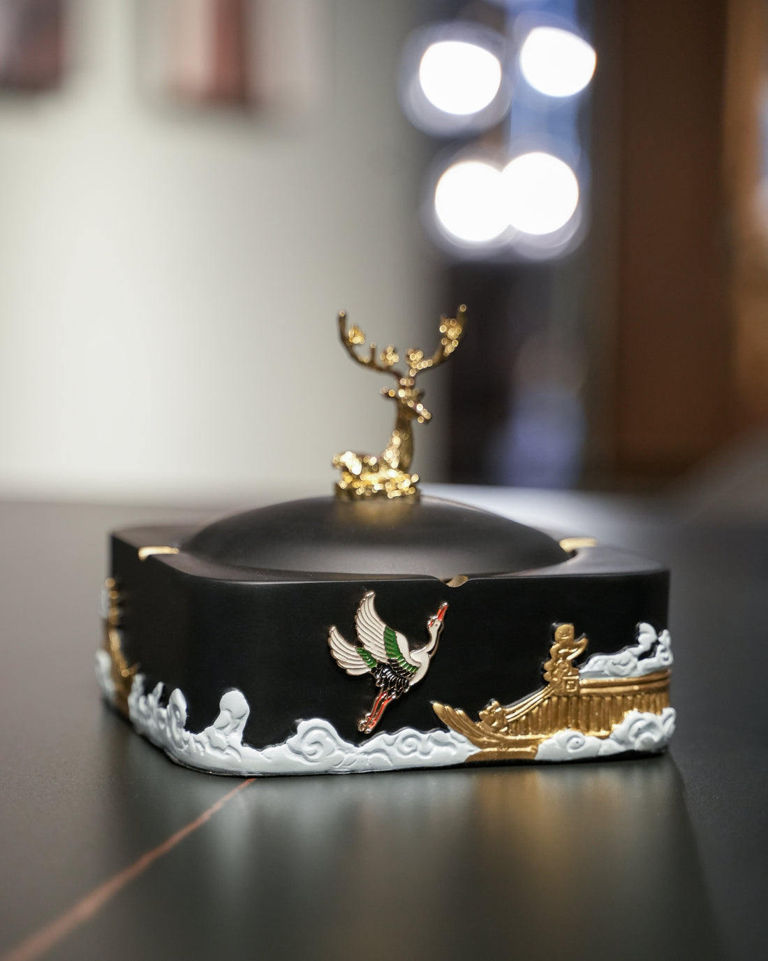 Refined resin and metal ashtray, expertly designed to merge practicality with a striking modern aesthetic....