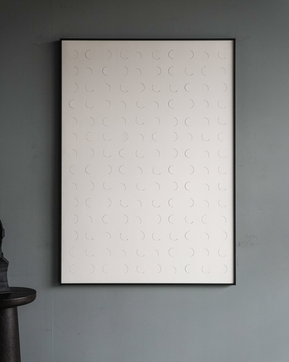 Where light meets form, this art panel rises. Merging of aluminium’s whisper and paperboard’s soul....