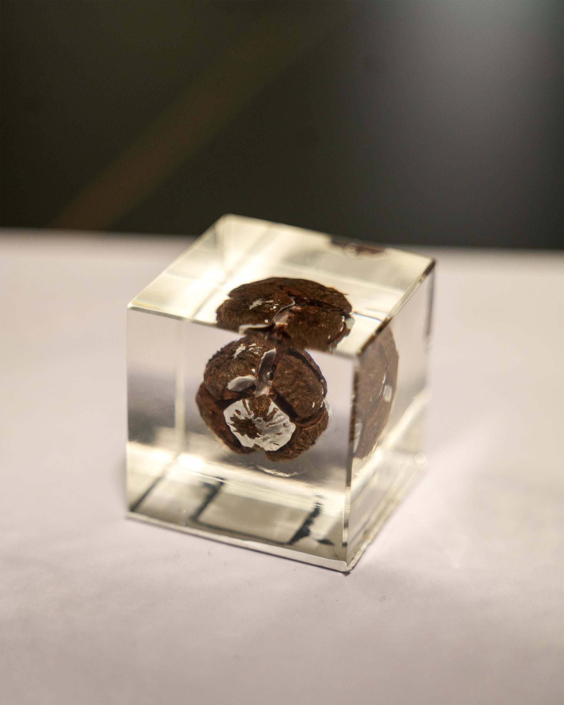 The Square Plant Resin Ornament E features an embedded plant in resin for a chic decorative touch.