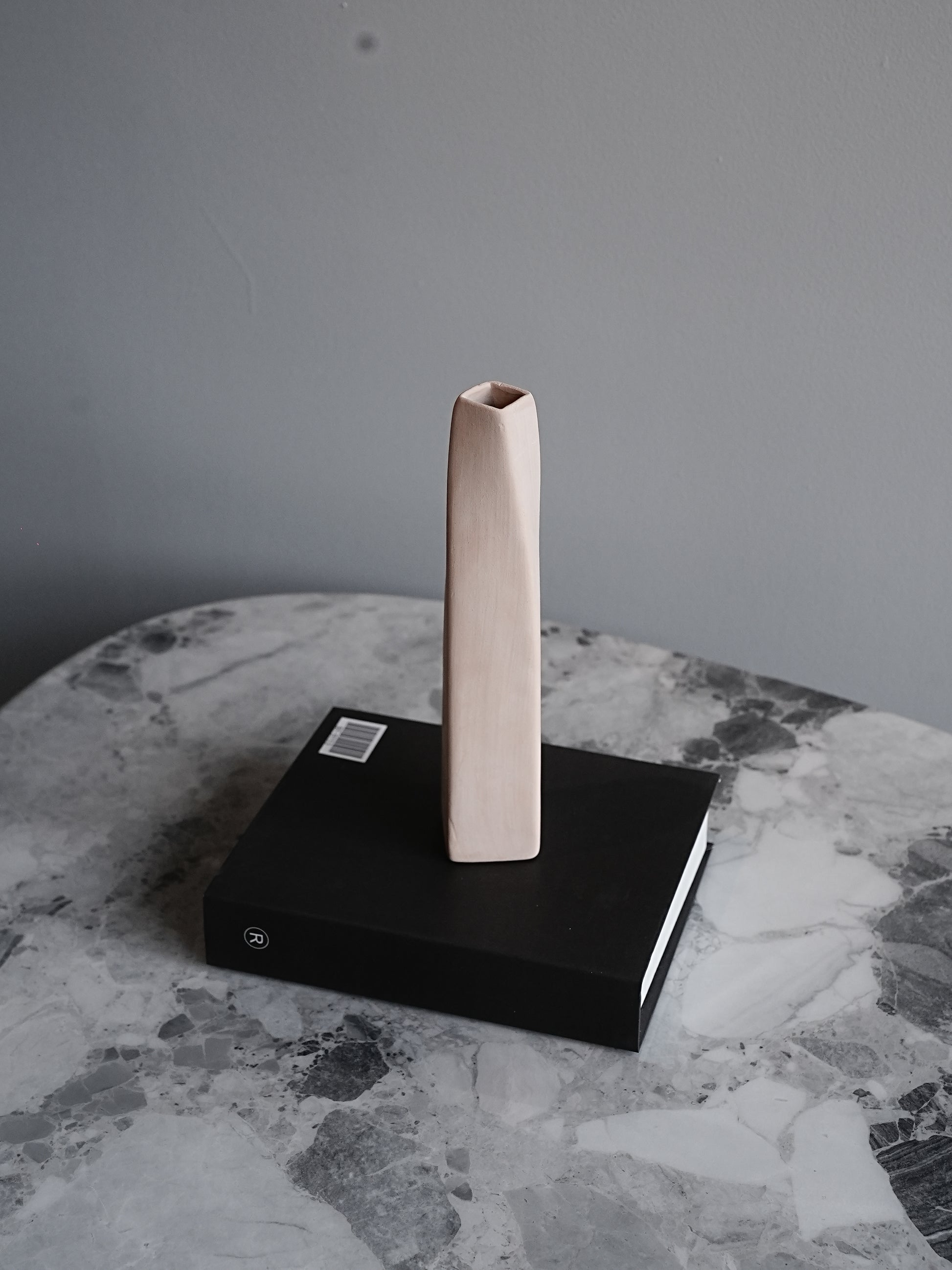 A small, glossy brown ceramic vase, ideal for accenting any space with flowers.
