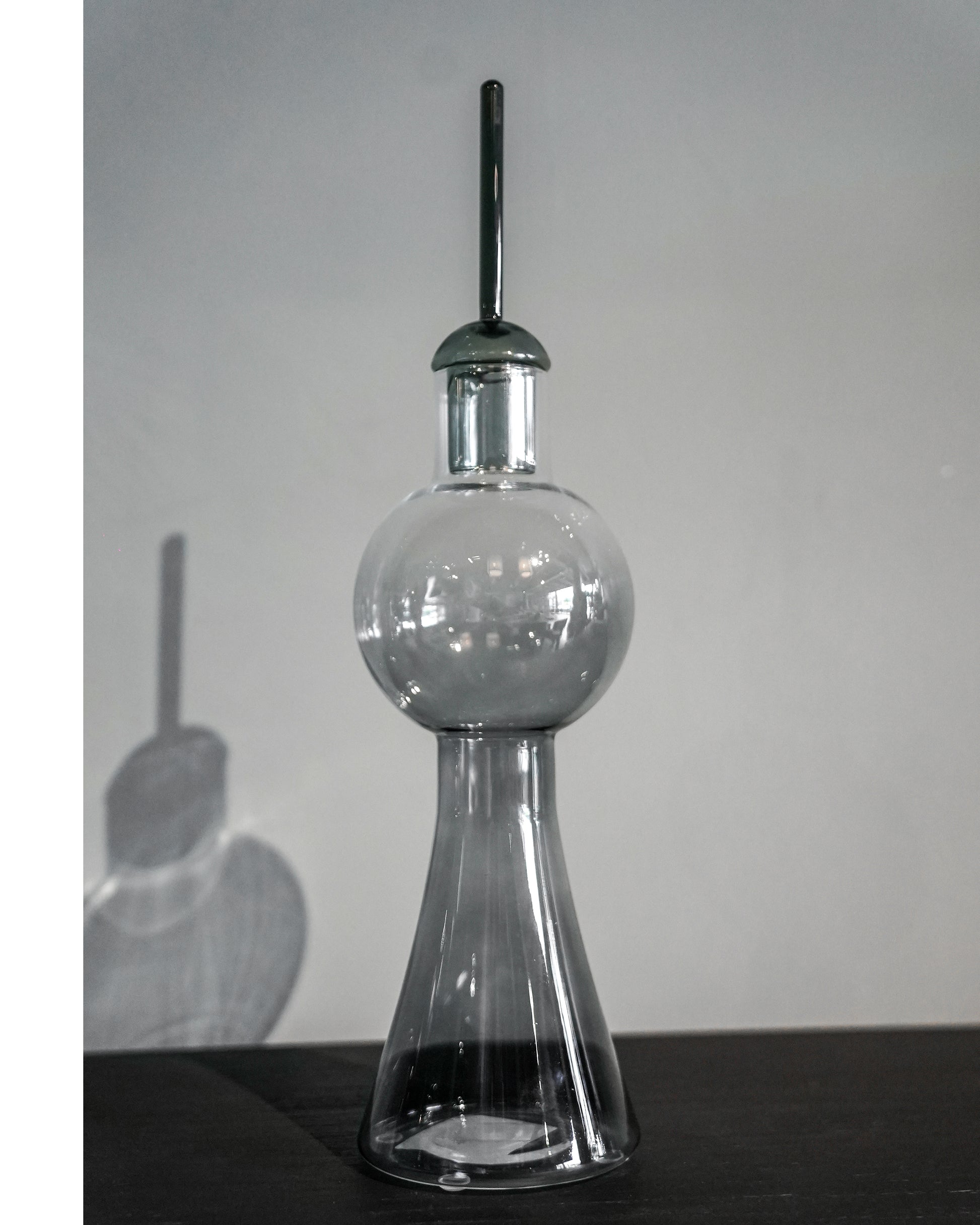 A durable glass container designed for safely storing liquids while showcasing their vibrant colors and textures. expertly crafted from high-quality material, this medium-sized ornament brings texture, elegance, and character to your living space. Ideal for shelves, sideboards, or bedside tables—it adds a refined touch without overwhelming the room.