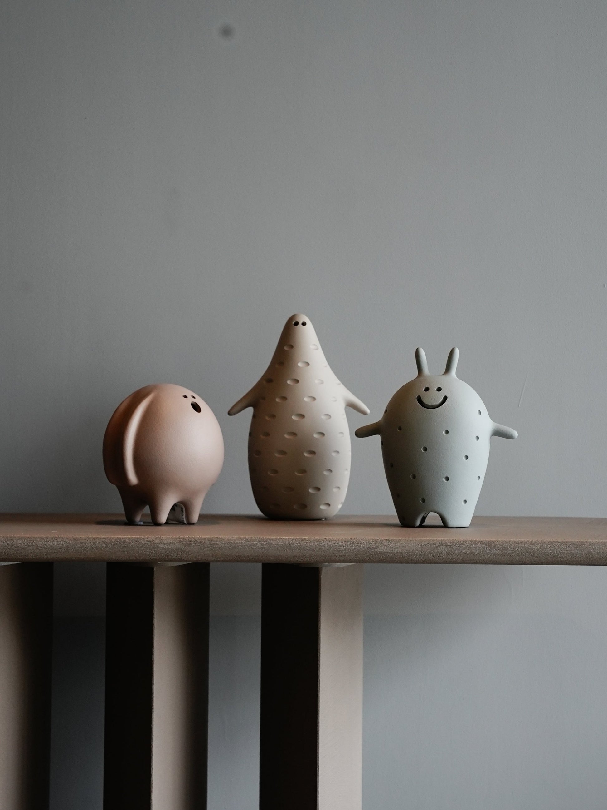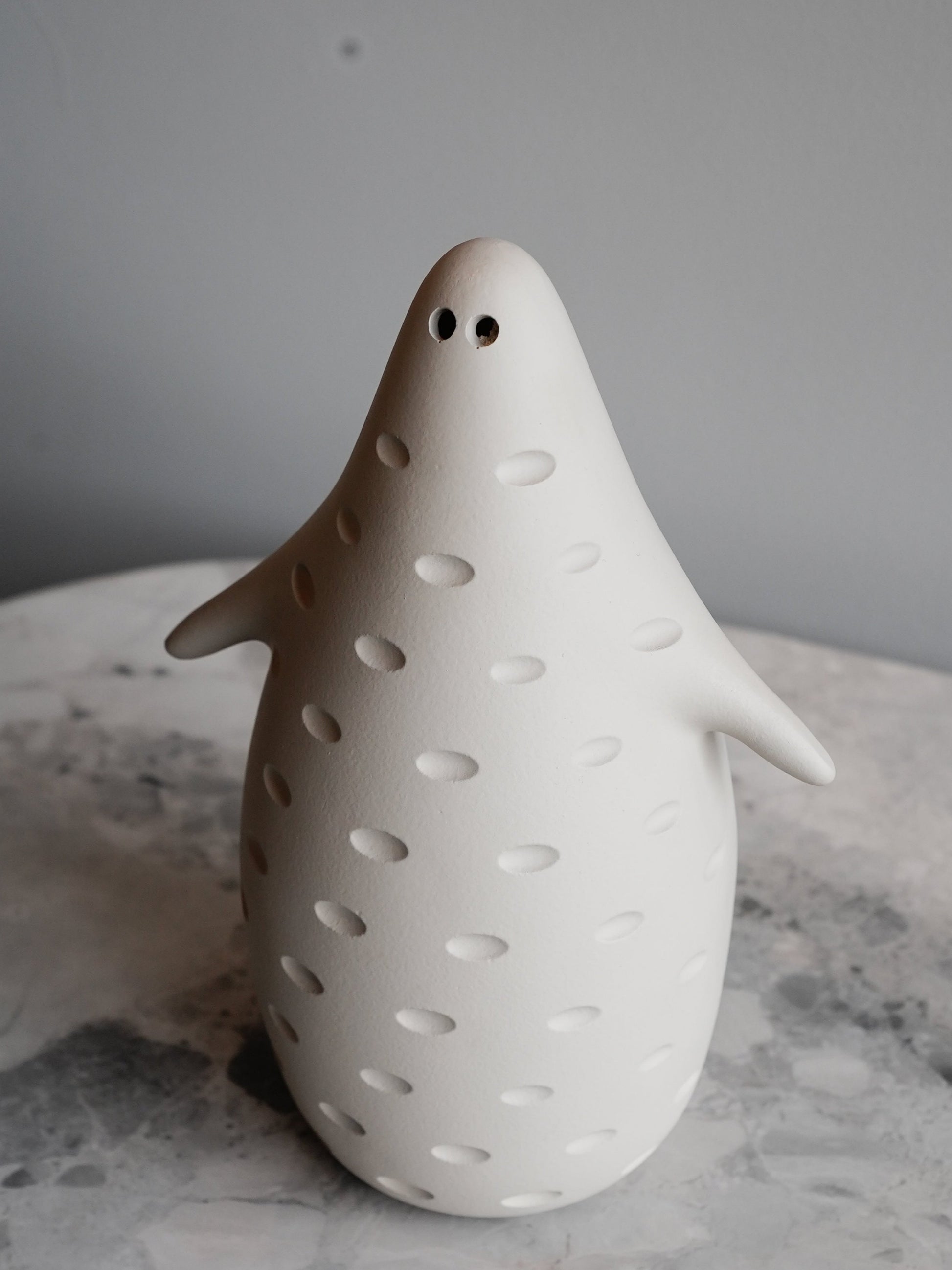 Crafted from smooth white resin, this whimsical décor piece adds a playful, modern touch to any setting. Its rounded form, tiny cut-out eyes, and dotted surface pattern create a characterful silhouette that works beautifully as a conversation starter or standalone accent. It’s perfectly sized for shelves, side tables, or desks. The minimalist design and neutral color allow it to blend effortlessly with contemporary, Scandinavian, or eclectic interiors while injecting a subtle sense of humor and personality into your space.