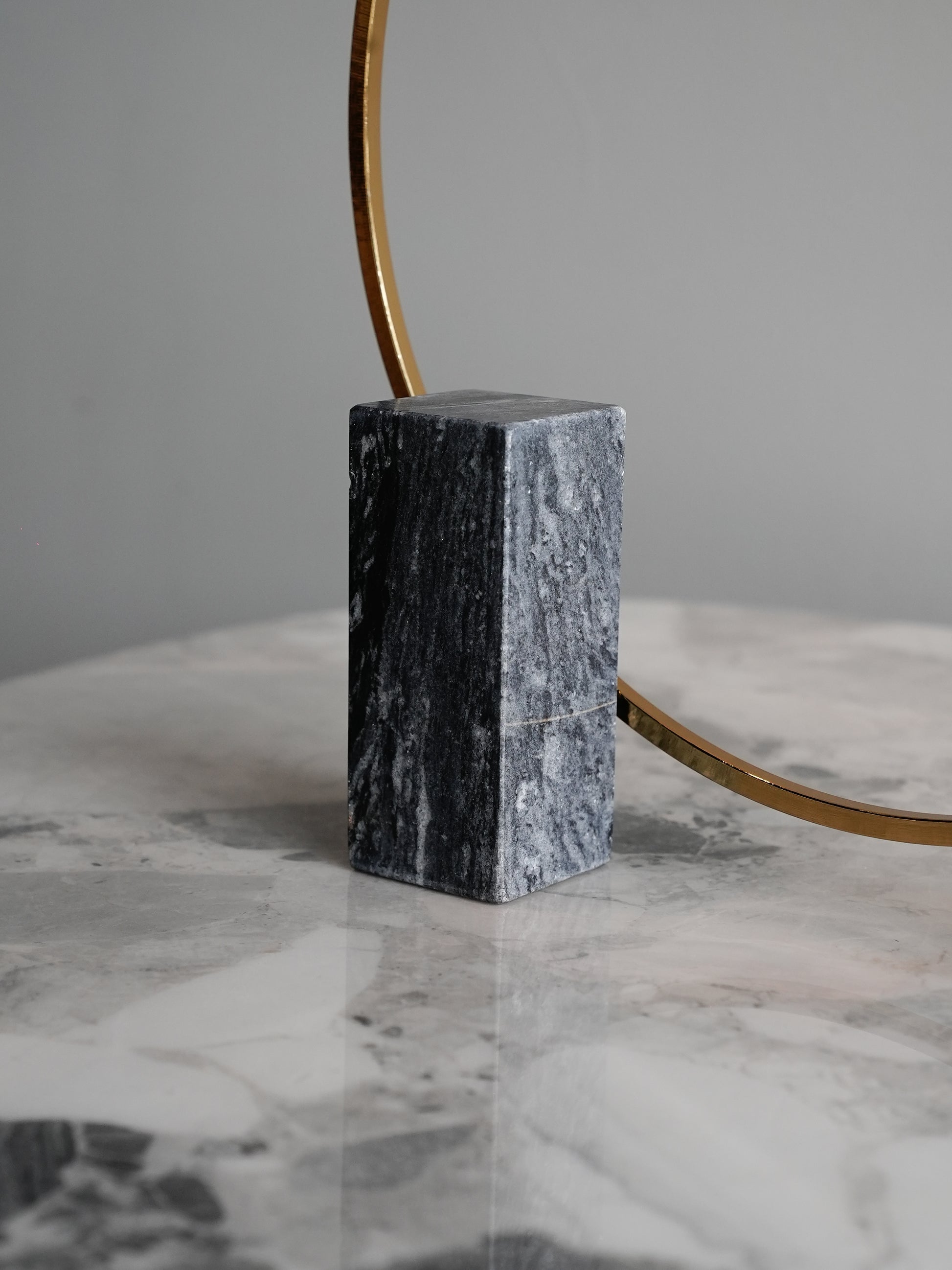 A stylish metal ornament featuring a striking marble disc, That adds a harmonious balance of texture and elegance to any space. Crafted from durable metal, the circular form makes a strong visual statement—ideal for modern, contemporary, or minimalist interiors. Perfect for adorning walls, placing on a mantel, or as the centerpiece of a decorative arrangement. Its timeless interplay of marble and metal brings a refined contrast that elevates living rooms, entryways, or office décor.