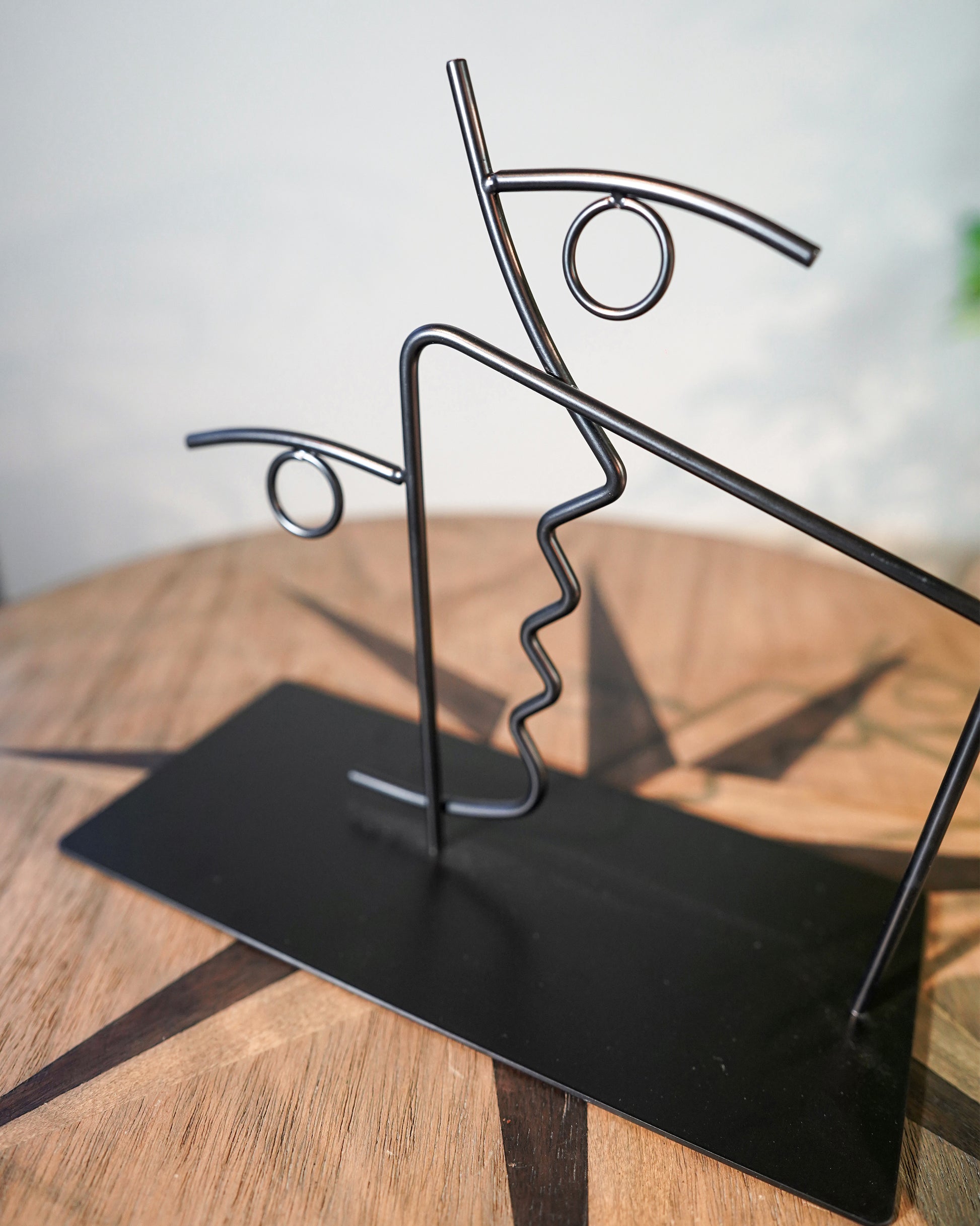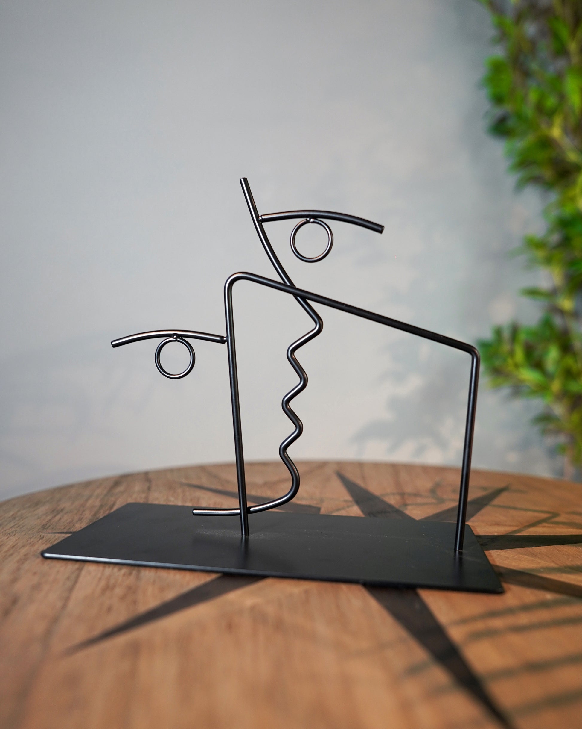 An artistic blend of form and minimalism in iron wire, offering a striking silhouette for modern interiors. Its open-frame construction adds visual intrigue and depth, making it an elegant statement piece for shelves, manteltops, or wall-ledges. Durable and lightweight, it complements contemporary, abstract, or industrial décor themes. Ideal for adding a sculptural accent that sparks conversation and elevates everyday spaces with subtle sophistication.