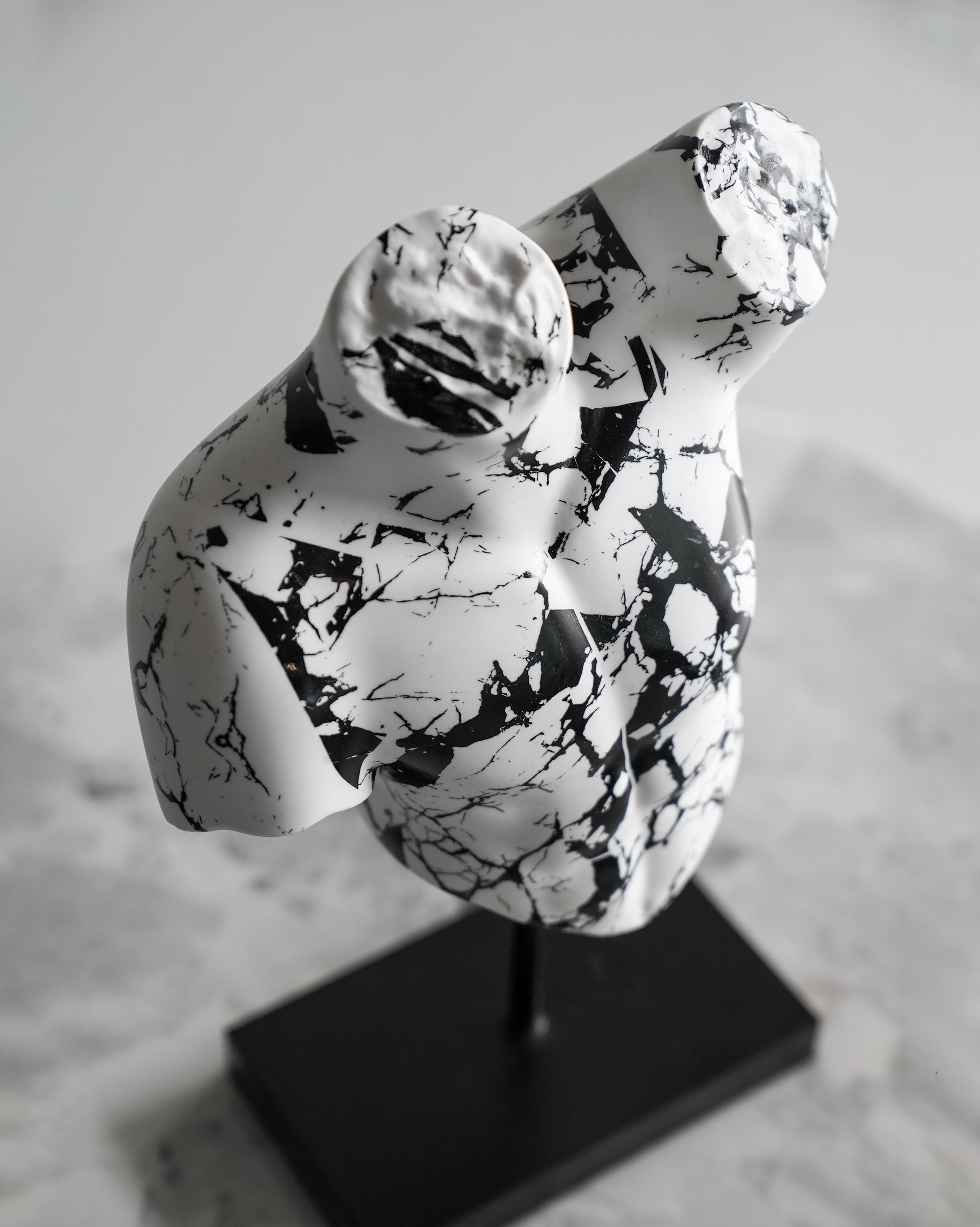 This resin humanistic ornament showcases graceful lines and intricate detailing, celebrating the beauty and complexity of the human form. Its artistic design and durable finish make it a striking decorative piece, perfect for elevating shelves, mantels, or table tops in any modern or eclectic space.