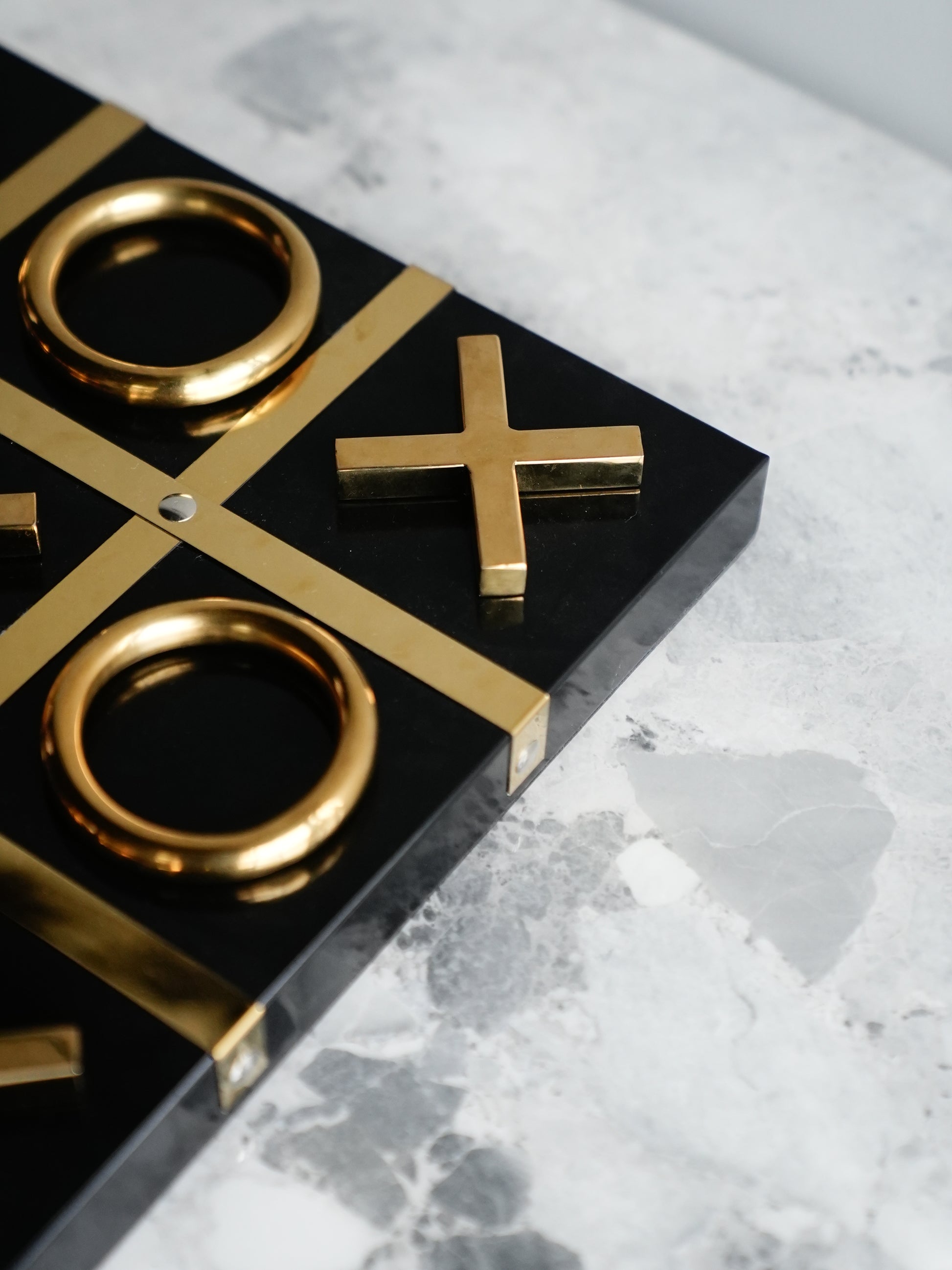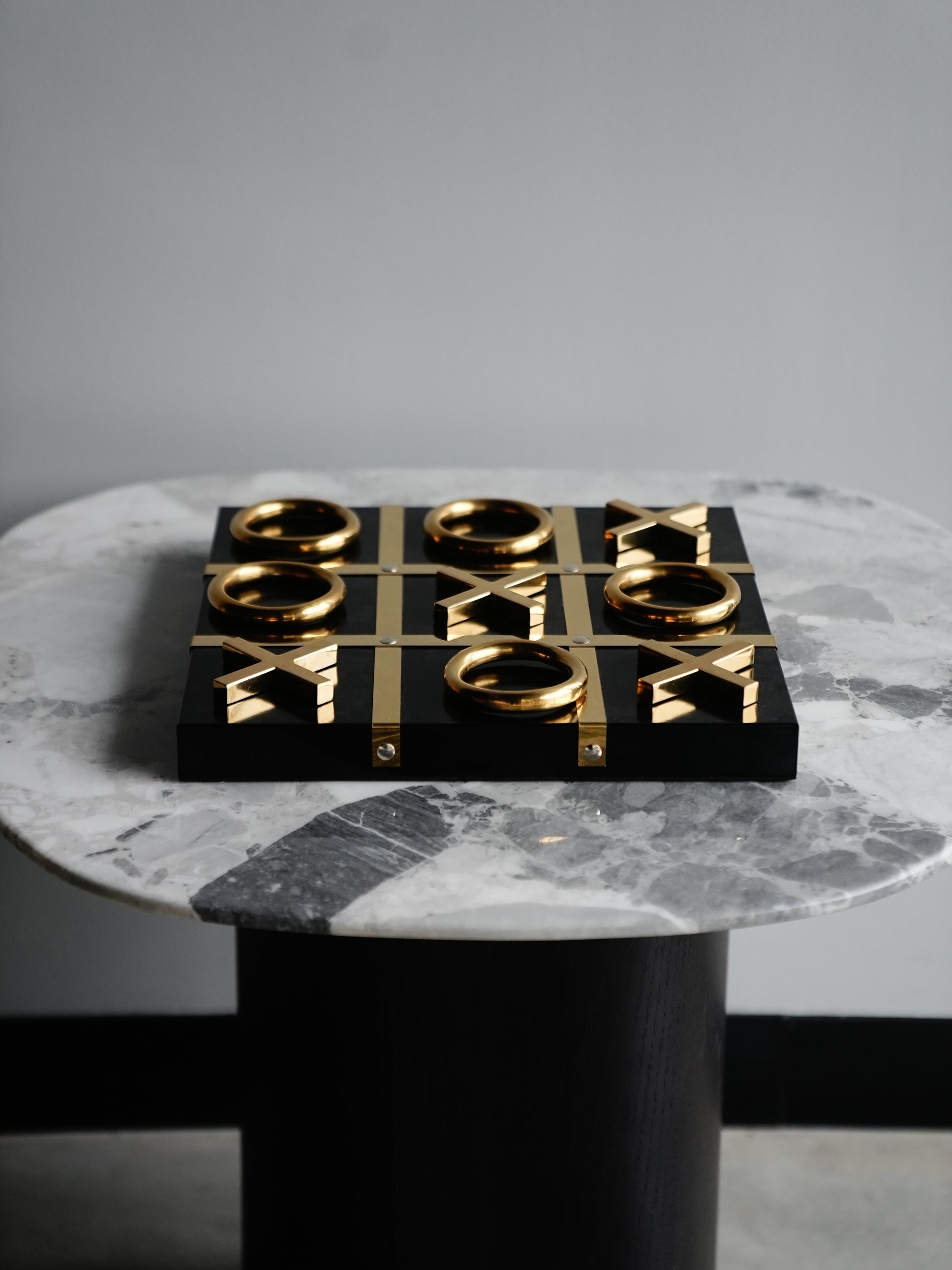 This small gold and black acrylic metal décor piece exudes modern sophistication with its striking contrast and clean lines. Its polished finish and contemporary aesthetic make it a versatile accent, adding a touch of luxury and style to any room.