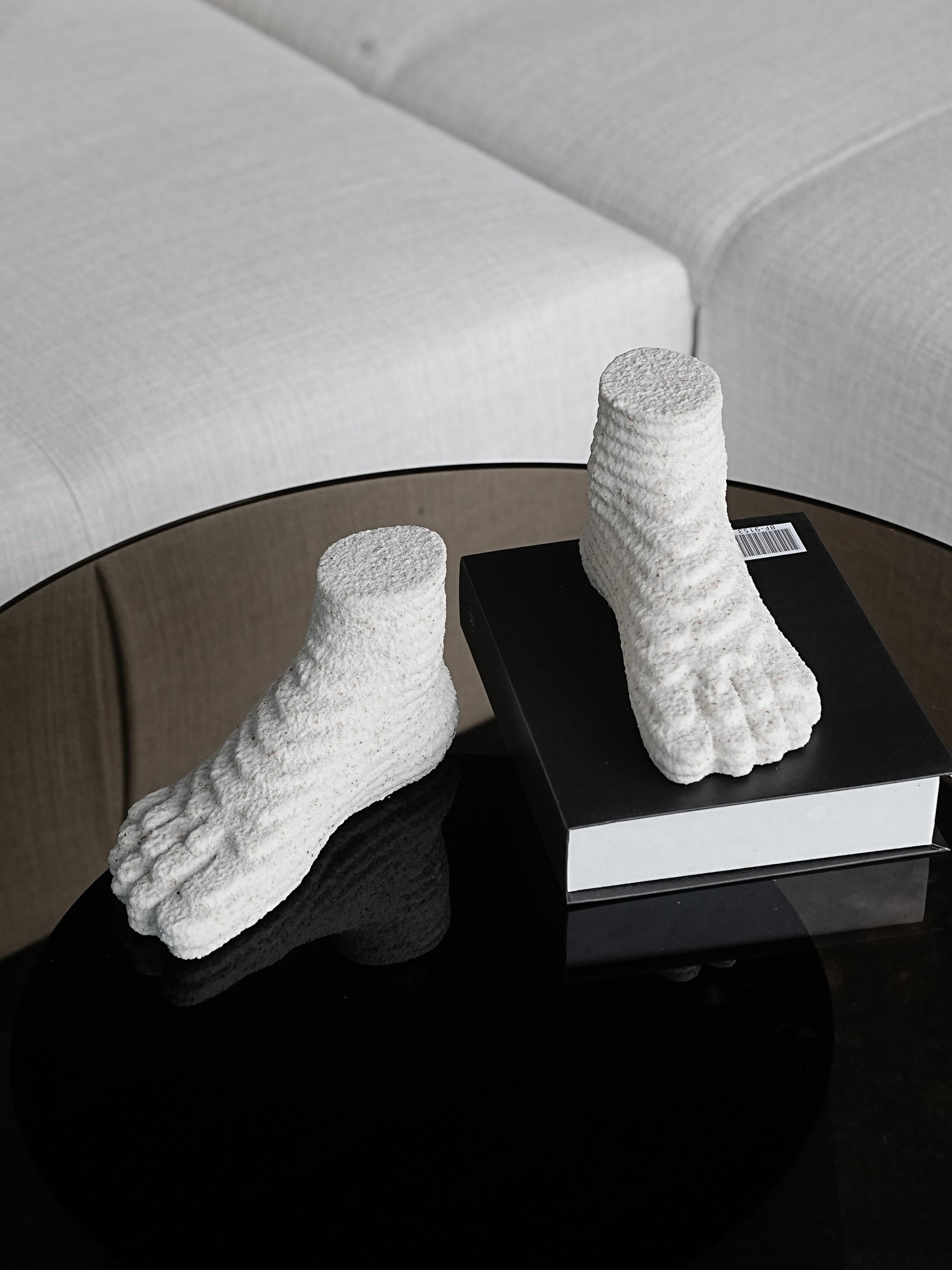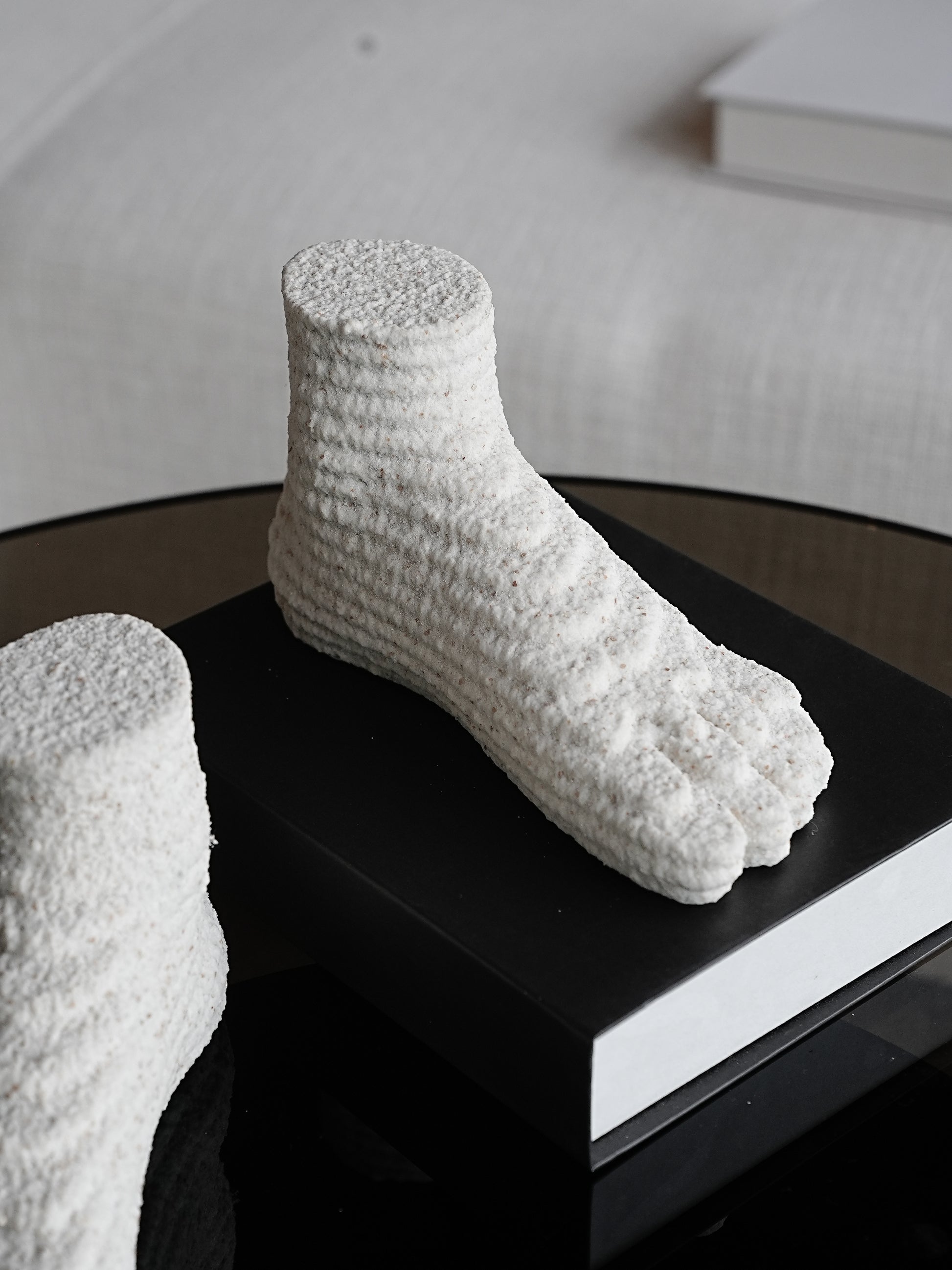 This unique ceramic décor piece, crafted in the playful shape of a leg, combines whimsical humor with contemporary artistry to create an eye-catching statement. Its distinctive design and smooth finish make it a conversation starter, adding personality and modern flair to any room or display.