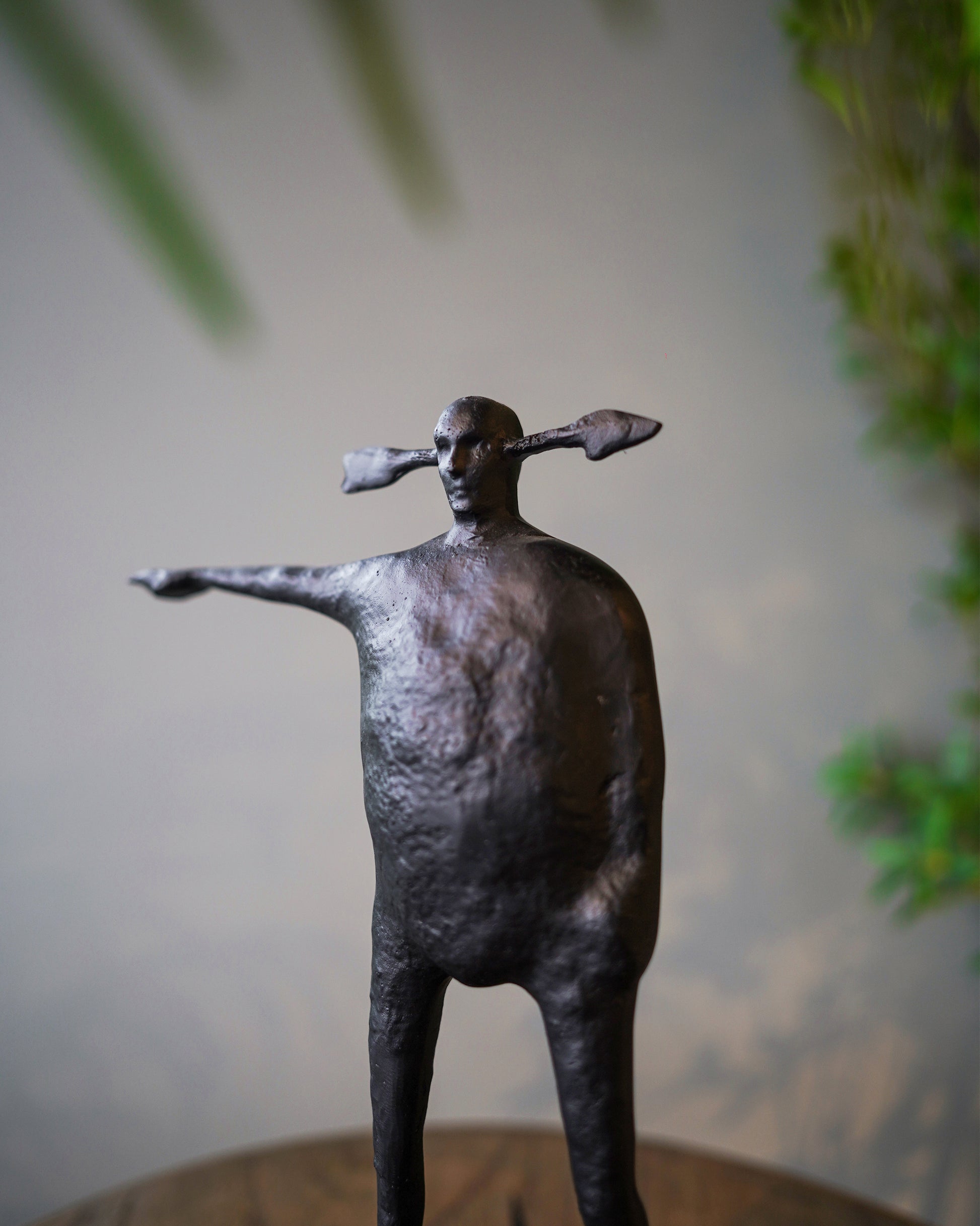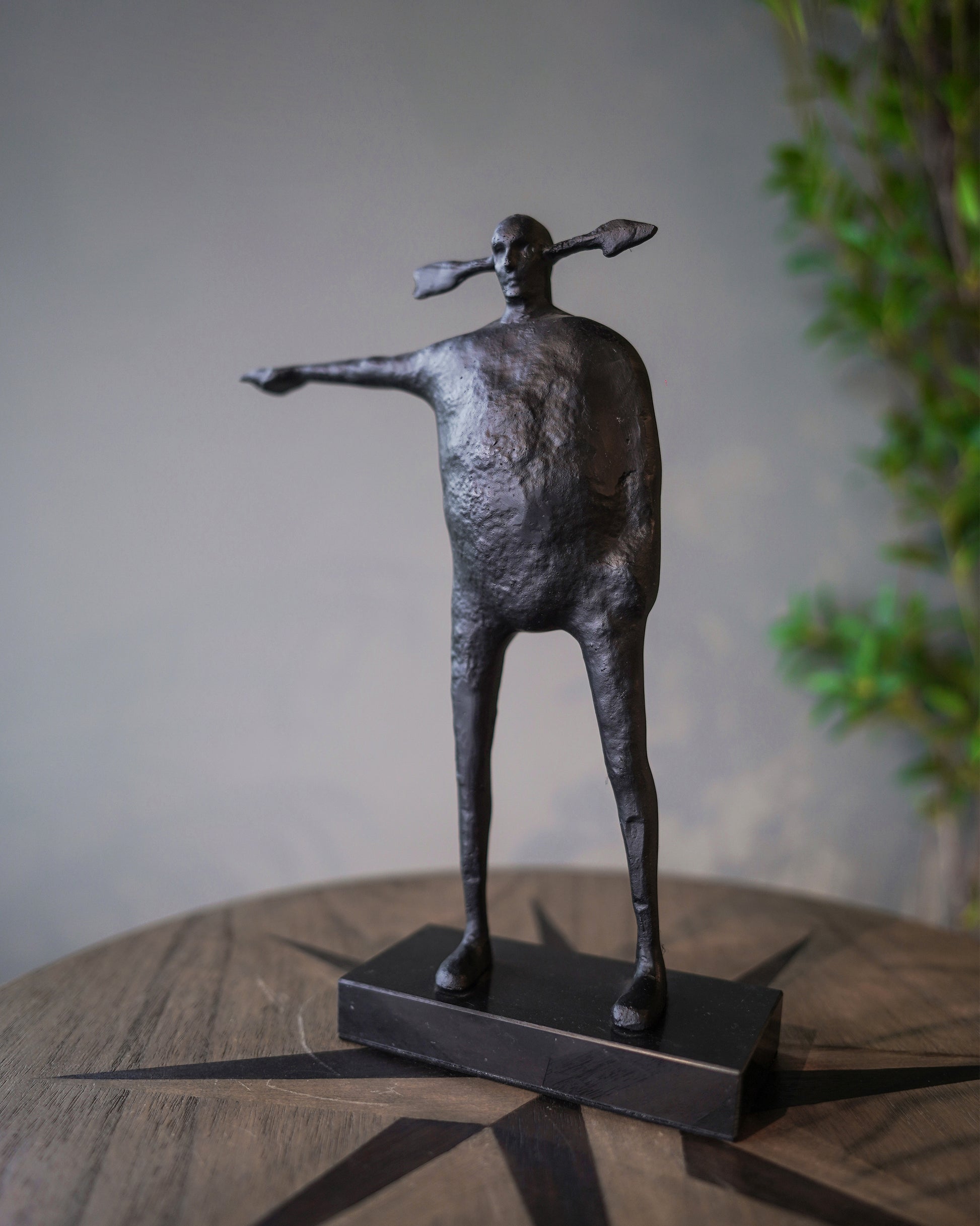 An elegant black ornament made of iron and marble, combining durability with sophisticated design.