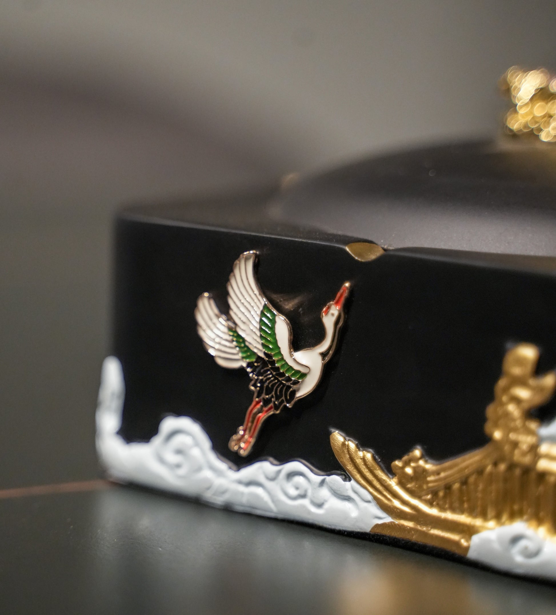 Refined resin and metal ashtray, expertly designed to merge practicality with a striking modern aesthetic.