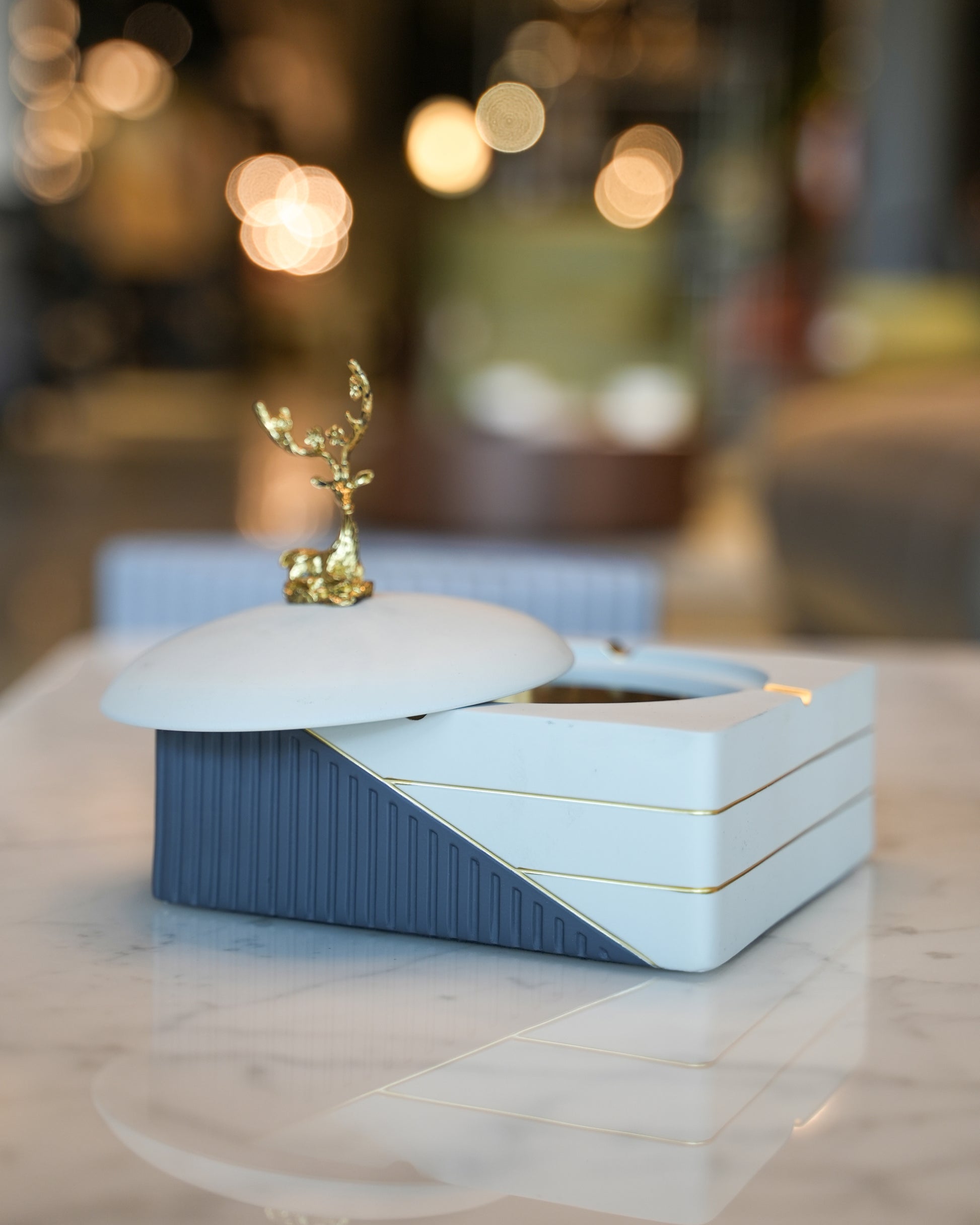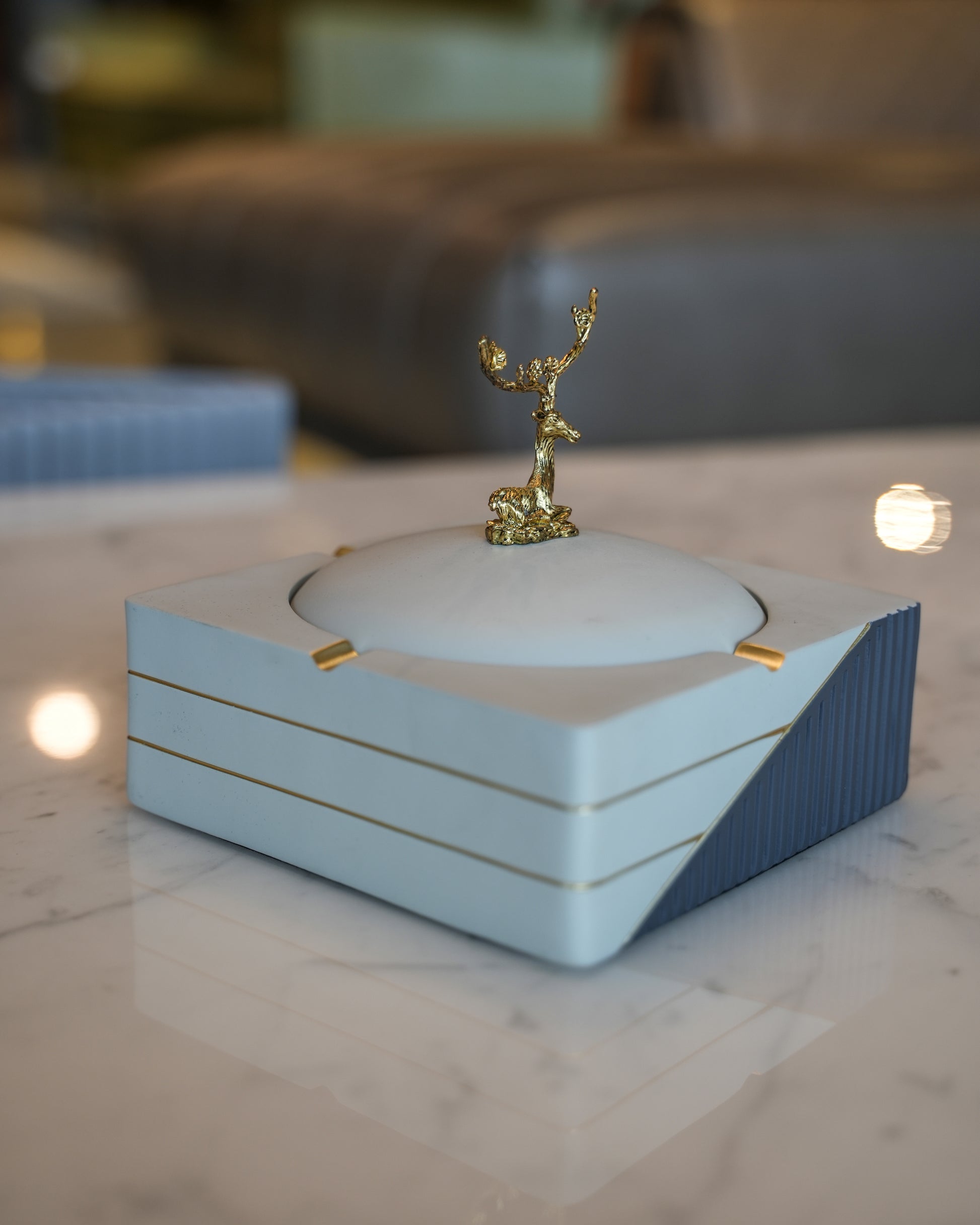 Refined resin and metal ashtray, expertly designed to deliver a durable and sophisticated solution for ash disposal.