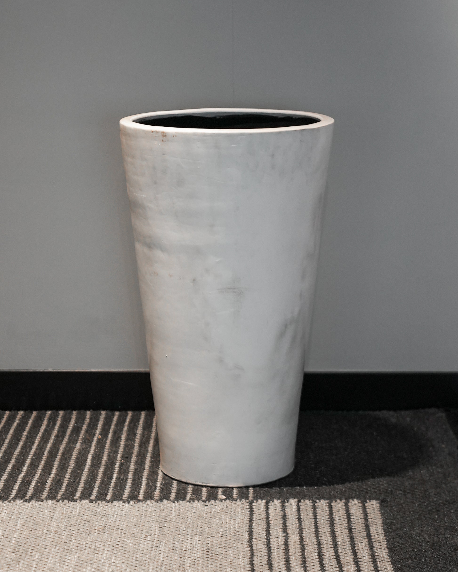 A white ceramic pot with a smooth finish, ideal for displaying artificial plants, offering a clean, modern look that complements any decor.