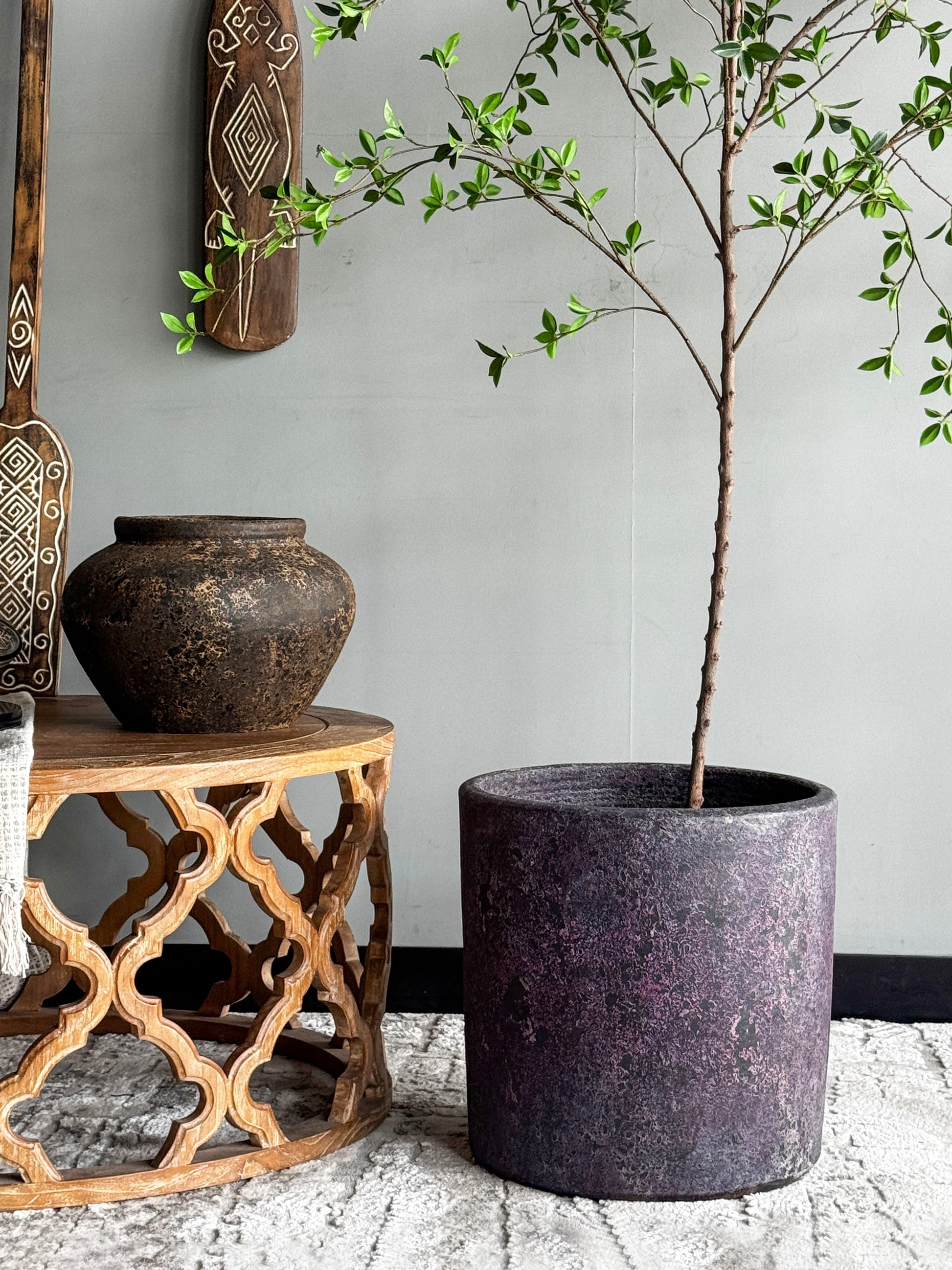 Shaped by skilled hands from the earth of Indonesia. A vessel of simplicity and strength. Its raw clay surface invites touch, grounding your space with quiet elegance