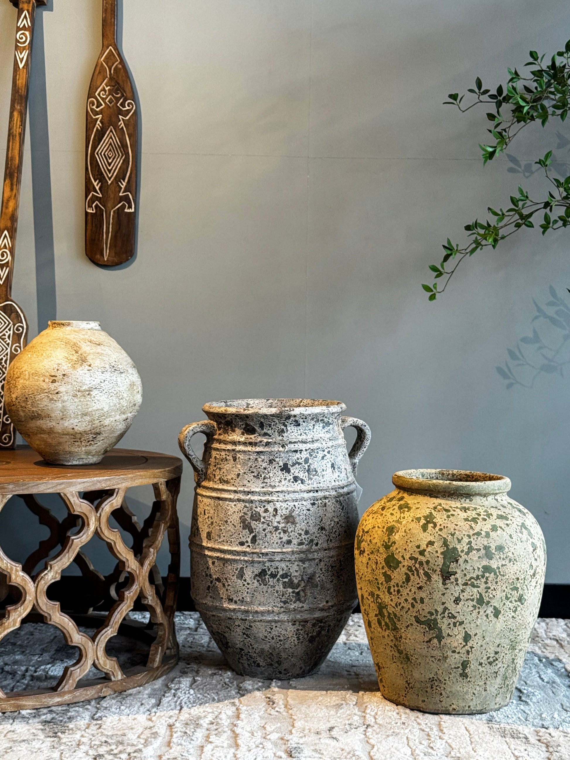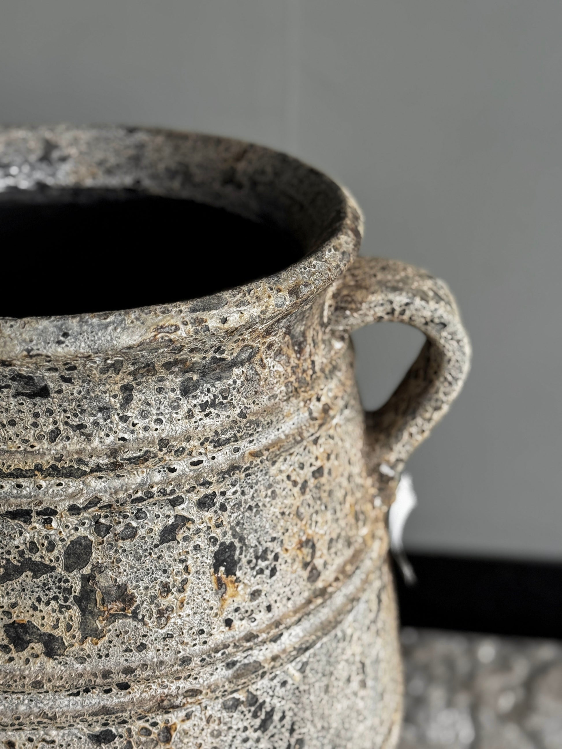Forged from clay under warm hands, this pot rises like a silent pillar. Its broad base grounding every whisper of light. Let foliage flow from its top or let its shape alone draw your gaze — a space made entire by earth and form