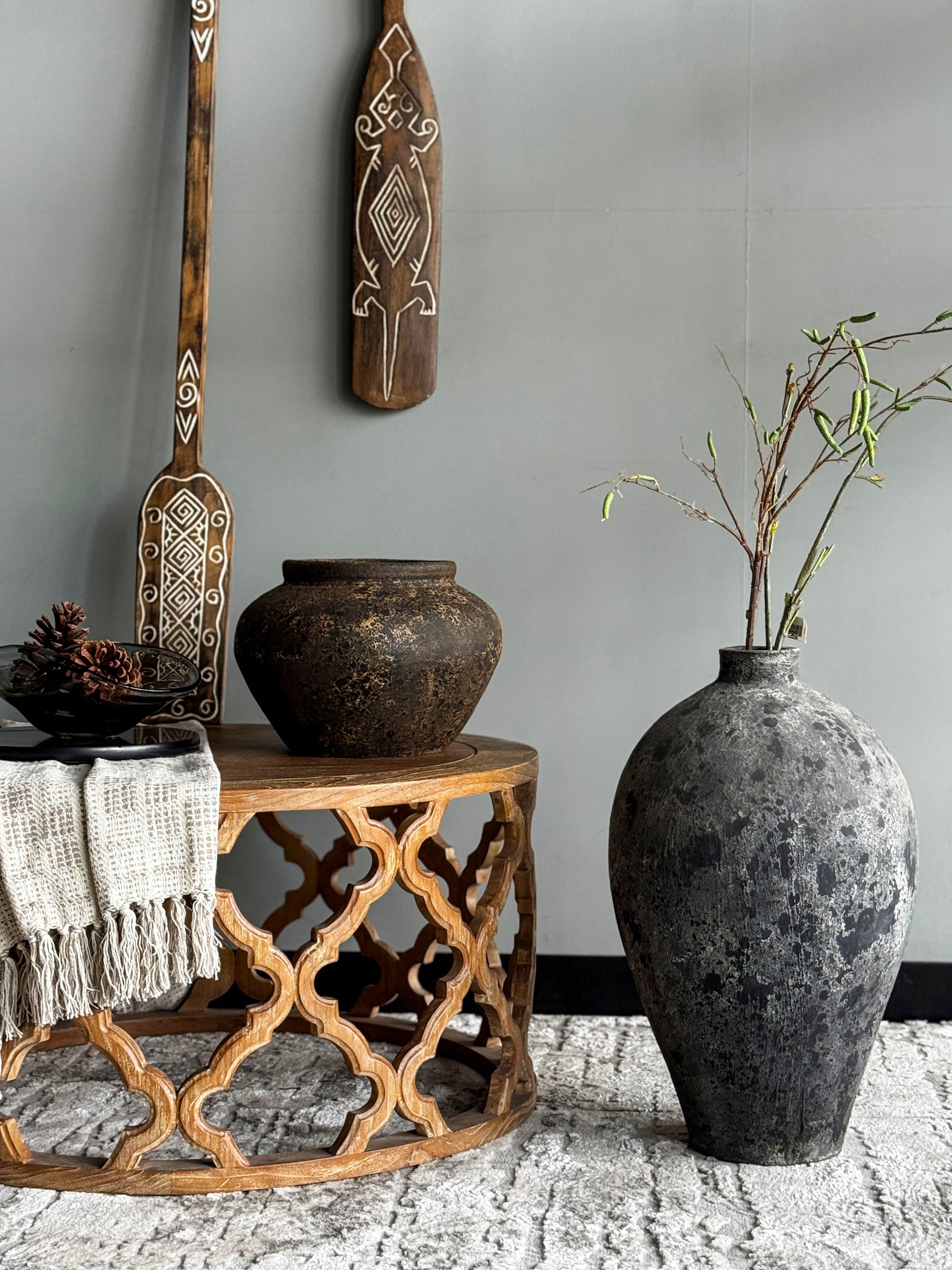 Rising from soft earth into a noble column, this pot shapes space with graceful strength. Fill it with greenery or let it stand alone — it is a quiet ode to nature’s elegant geometry
