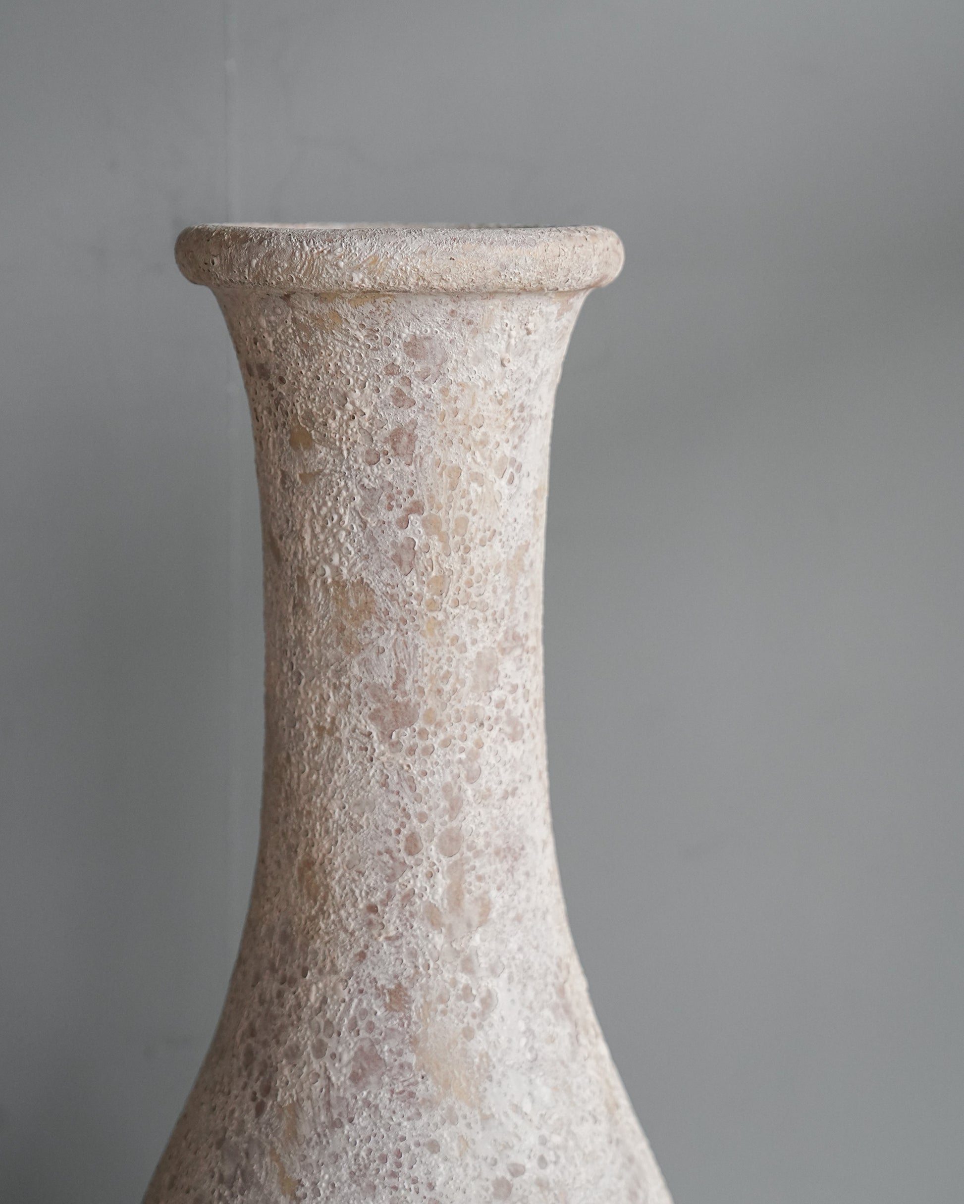 Standing a full metre high, this pot rises like a silent column of earth. Shaped by hands across the distance, it carries the warmth of clay, offering presence without pretense—an elemental tribute to nature’s strength