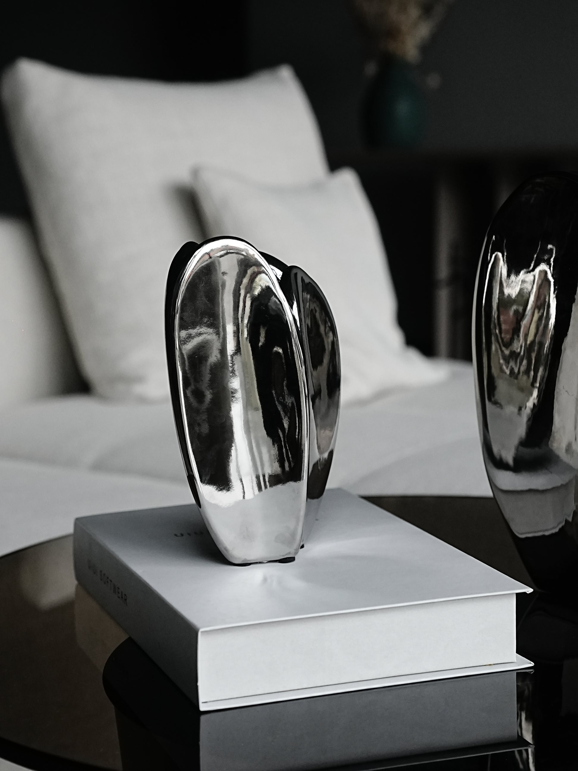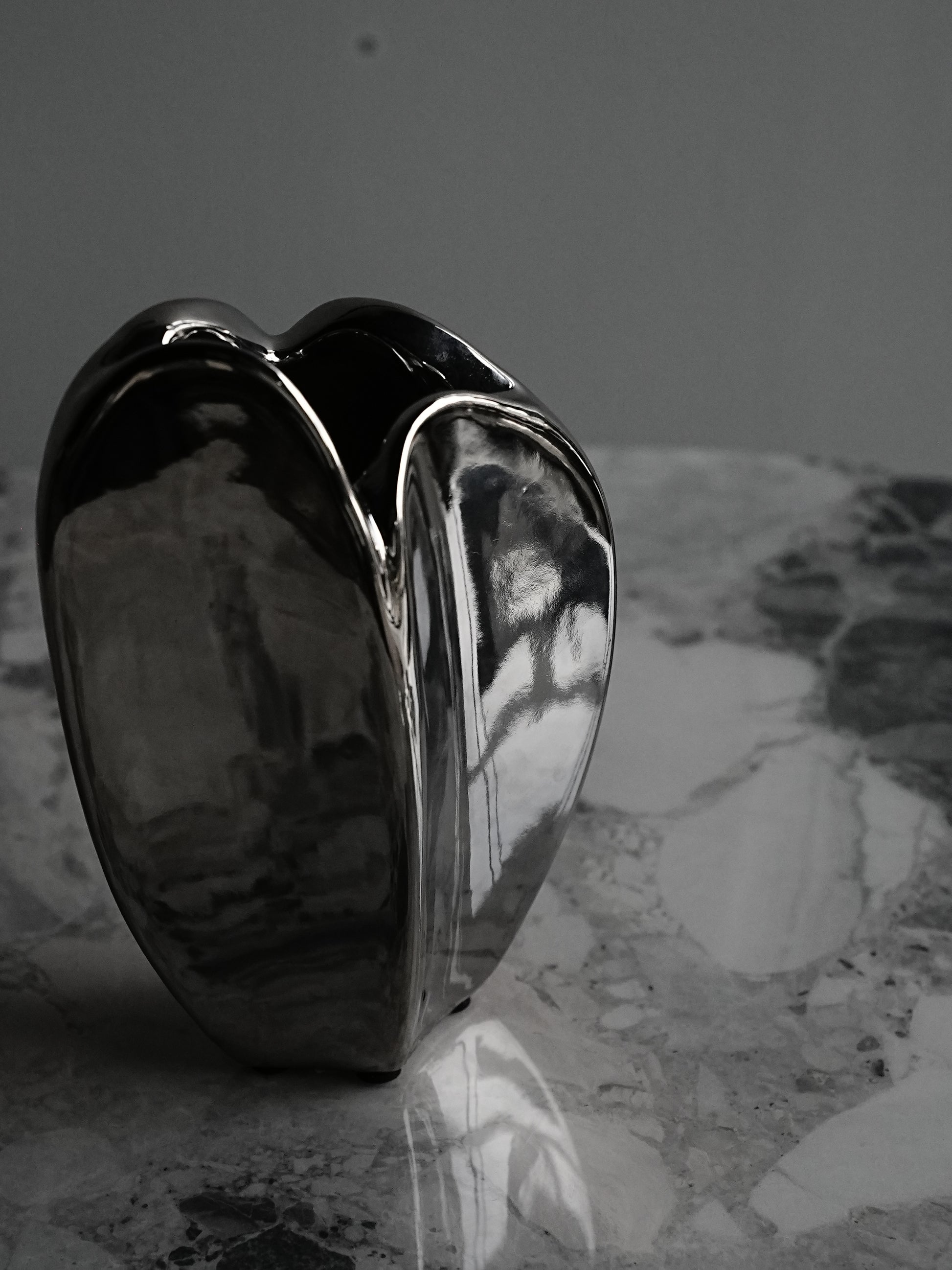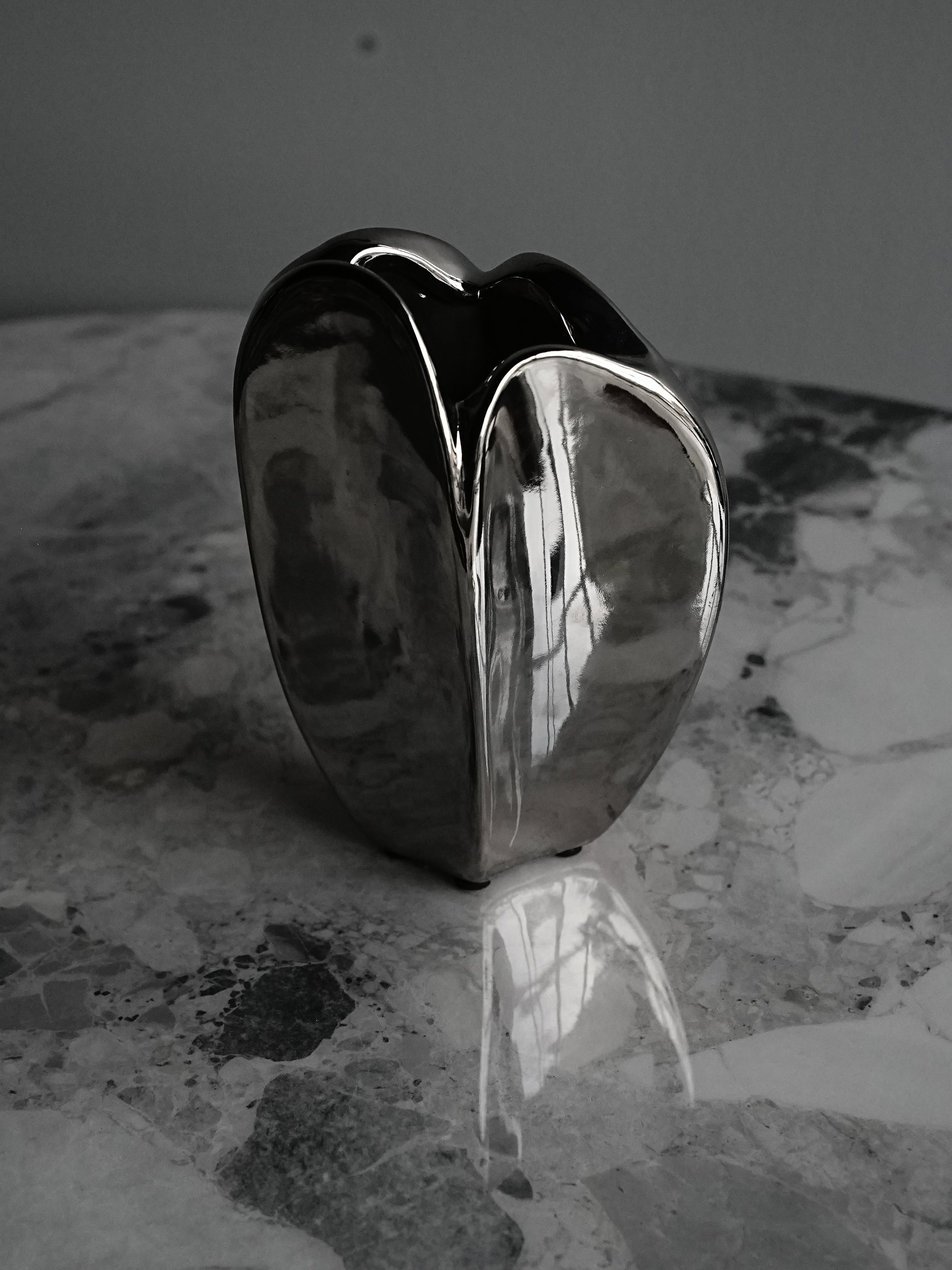 A ceramic silver vase is a sleek, silver-finished vase made from ceramic.